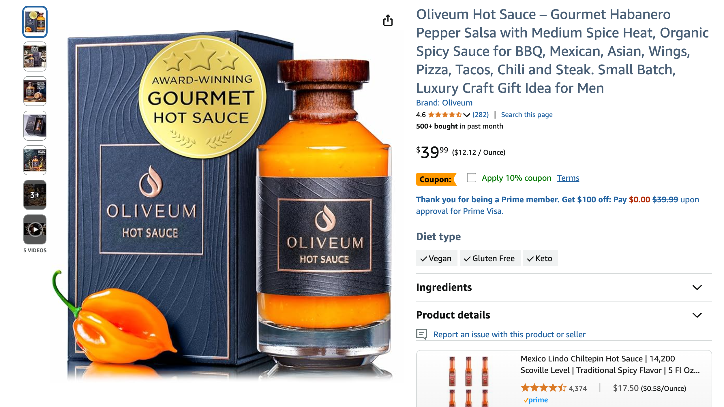 Around Christmas of 2024 I saw an ad for Oliveum Hot Sauce on Amazon. The small bottle was $40 (although I saved 20% at the time) and the marketing was over-the-top with beautiful pictures and outlandish claims like being “The World’s Best Hot Sauce.” I wasn’t excited to fall for this marketing, but of course I had to give it a try.